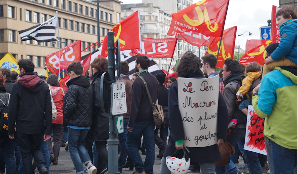 Syndicaliste anticapitaliste de la première heure, Jean-Pierre trouve en Macron « l’épouvantail capitaliste idéal ». En revanche, le son de cloche était parfois différent dans le cortège. « Cela m’énerve d’entendre la jeunesse scander des slogans contre le banquier Macron. On est dans un relent de fascisme des années 30 où le banquier était le juif, le fautif de tous les maux de la société, » confie Christophe. « Je suis dégoûté par la confusion actuelle qui mélange le vrai fascisme à une politique économique qui essaie d’être réaliste. »