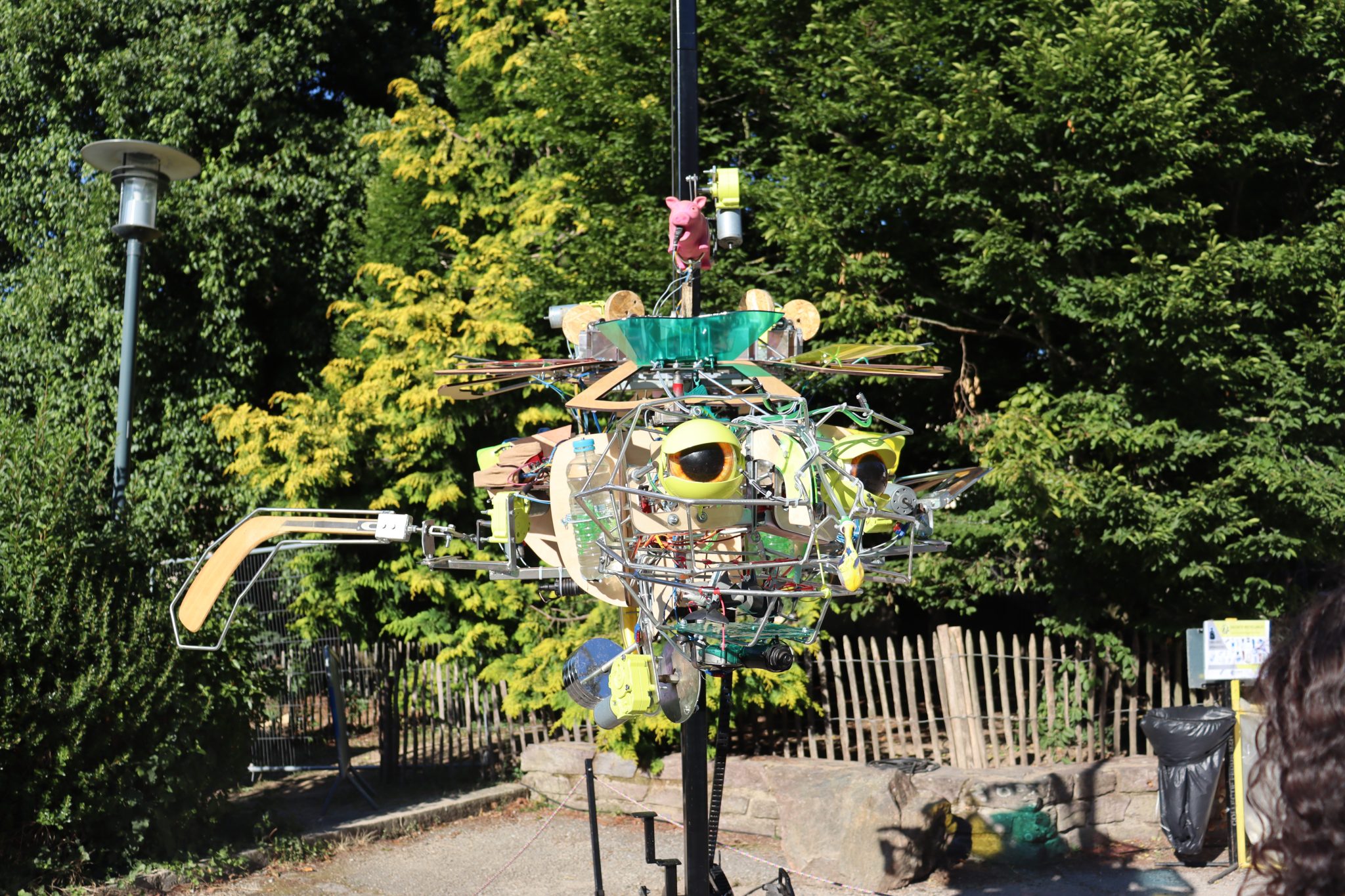 Communicants, ces robots émouvants et troublants ont vécu le temps d’un festival une vie mouvementée au rythme des DJ et de l’ambassadeur savon (musicien un brin déjanté). À heure fixe, en fin de journée, ils ont mis en branle leur belle mécanique, leurs tiges d’acier, leurs ailes recyclées, leurs nageoires bricolées et leurs pinces rafistolées.
