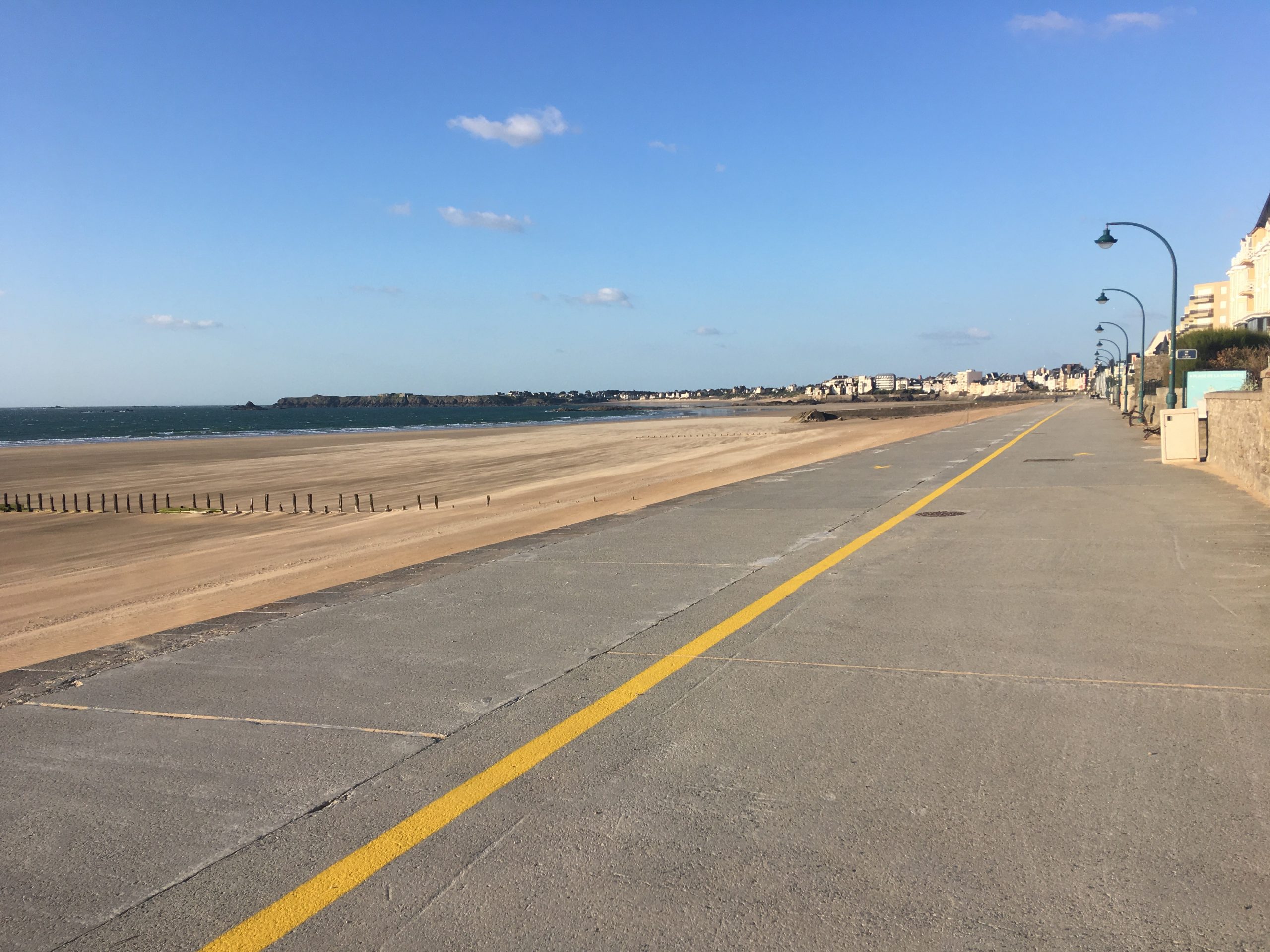 A Saint-Malo et Cancale, de nombreuses personnes ont retrouvé les plages ouvertes, dès ce matin, 8 heures. Mais ce n’était pas la grande marée attendue… A Port-Mer, en début d’après-midi, quelques habitants ont sorti les planches à voile. Sur les plages du Sillon et à la Guimorais, les promeneurs étaient bien plus éparpillés, mais très peu avaient sorti les serviettes, le pique-nique et l’autobronzant de peur d’être repérés par la patrouille de la police municipale effectuant de nombreux contrôles. L’ouverture des plages était réclamée et attendue depuis quelques semaines. Elles ne rouvrent pas toutes au public, comme la très célèbre Bon Secours connue pour son plongeoir ou encore celles de Saint-Servan. 66 sont toutefois ouvertes de 8 h à 20 heures pour un « usage dynamique » selon la formule des autorités préfectorales (baignade et activités nautiques). Des marquages avec des sens de circulation ont été effectués sur la fameuse promenade du Sillon. Chiens, animaux sont interdits tout comme la consommation d’alcool et les regroupements de plus de dix personnes.