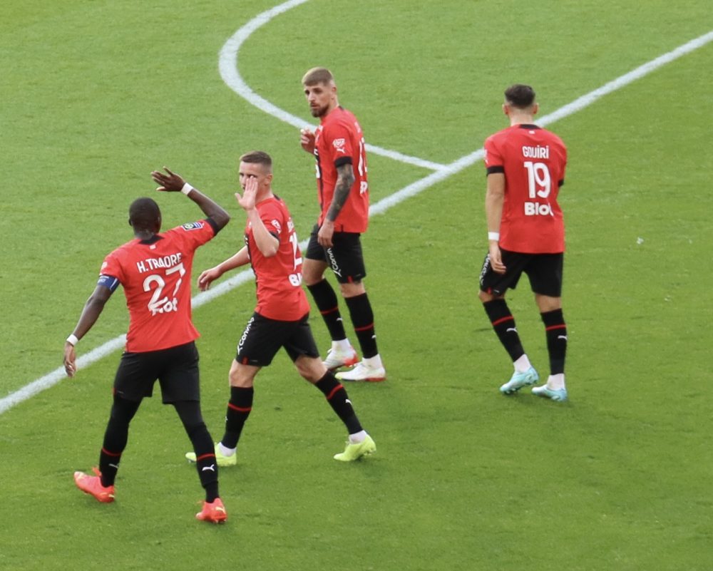 La composition du Stade Rennais F. C. : Steve Mandanda, Hamari Traoré (c), Joe Rodon, Arthur Theate, Adrien Truffert, Xeka (Lesley Ugochukwu 80e), Flavien Tait, Benjamin Bourigeaud (Désiré Doué 83e), Martin Terrier (Kamaldeen Sulemana 87e), Arnaud Kalimuendo (Lovro Majer 80e), Amine Gouiri (Matthis Abline 87e). Entraîneur : Bruno Genesio.