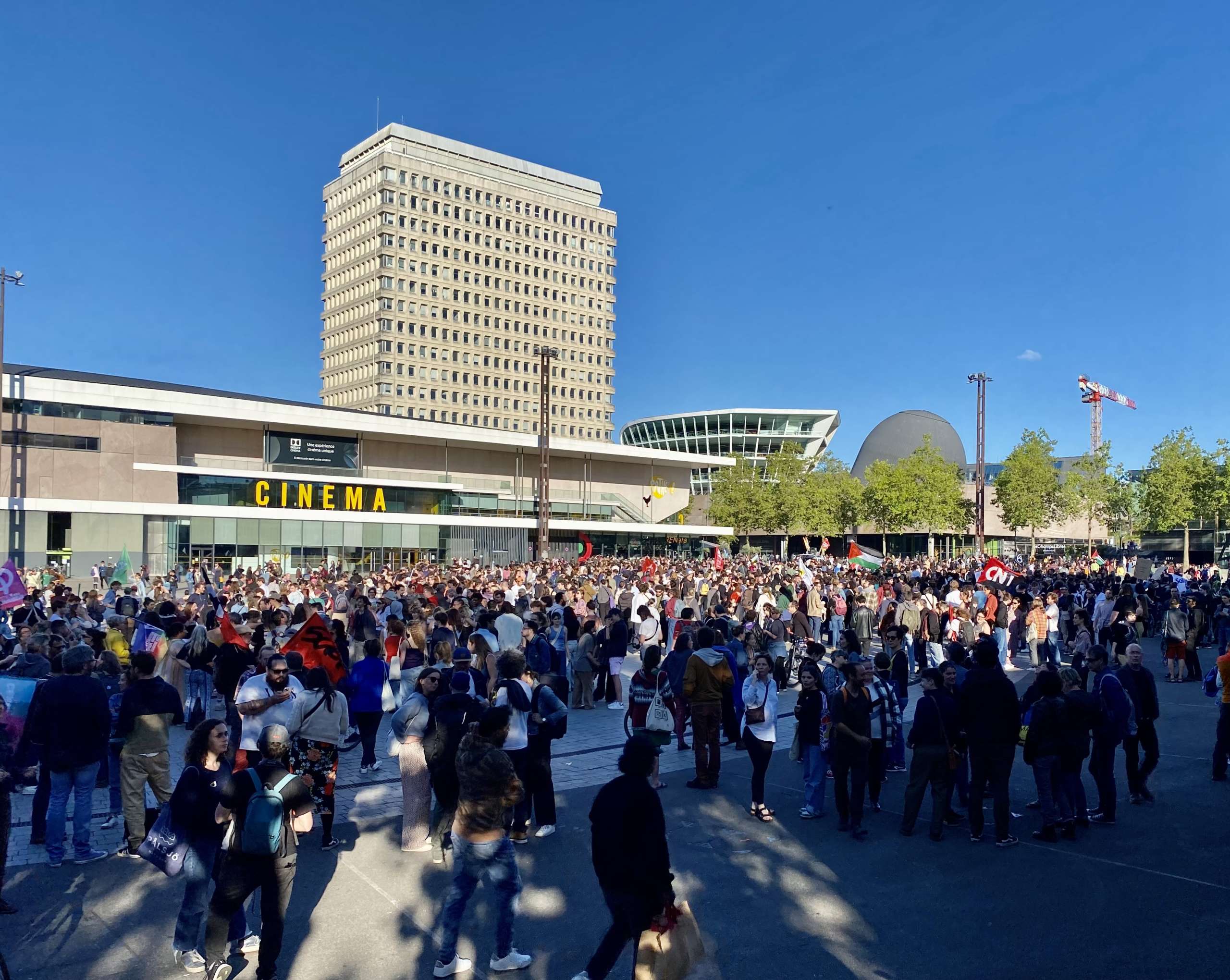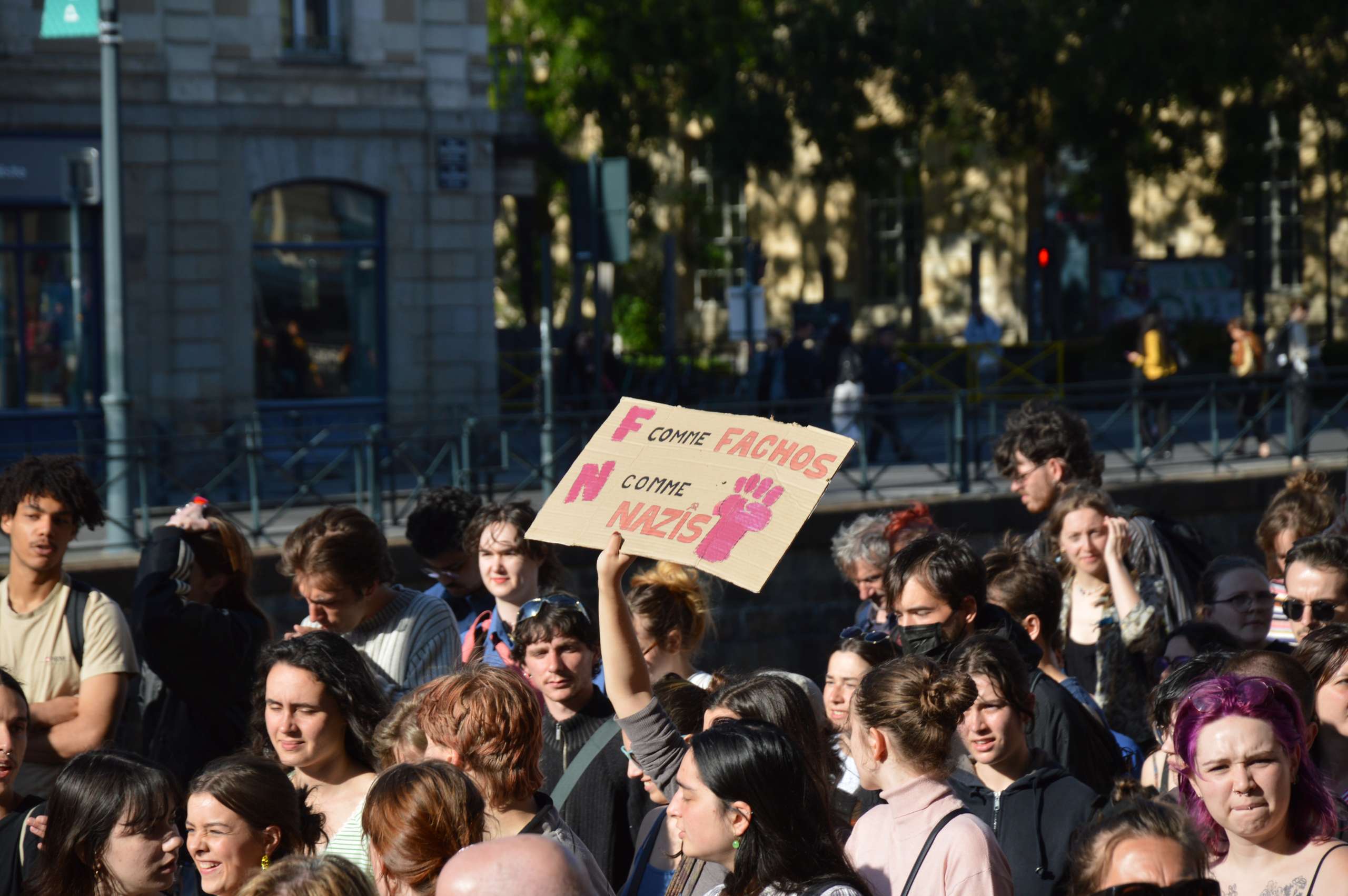 Ce lundi 10 juin, un cortège de 4 000 manifestants s’est rassemblé pour protester contre le Rassemblement national. Ce jour, à 18 h 30, 3 000 personnes (6000 selon les manifestants) se sont regroupés sur l’esplanade Charles de Gaulle, sous l’impulsion de plusieurs syndicats (CFDT, CGT, FO, FSU, Solidaires), d’Alternatiba et de mouvements étudiants (Union Pirate, FSE).