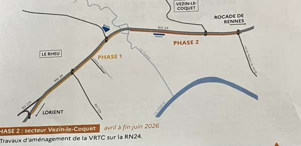 D’ores et déjà, une première phase de travaux a été réalisée en 2025 du carrefour du Rheu jusqu’à l’entrée de Vézin. Mais cette fois, le chantier entre dans une étape plus lourde. « Là, on entre dans le dur », reconnaît le directeur. « Nous estimons jusqu’à 20 minutes de bouchons supplémentaires sur un axe déjà très fréquenté. » Du 13 au 24 avril, pendant les vacances scolaires, la circulation sera particulièrement impactée dans le sens Lorient–Rennes. La voie de droite sera fermée en continu, sept jours sur sept, entre la Flume et le Manoir de Servigné. L’accès aux commerces restera toutefois maintenu.