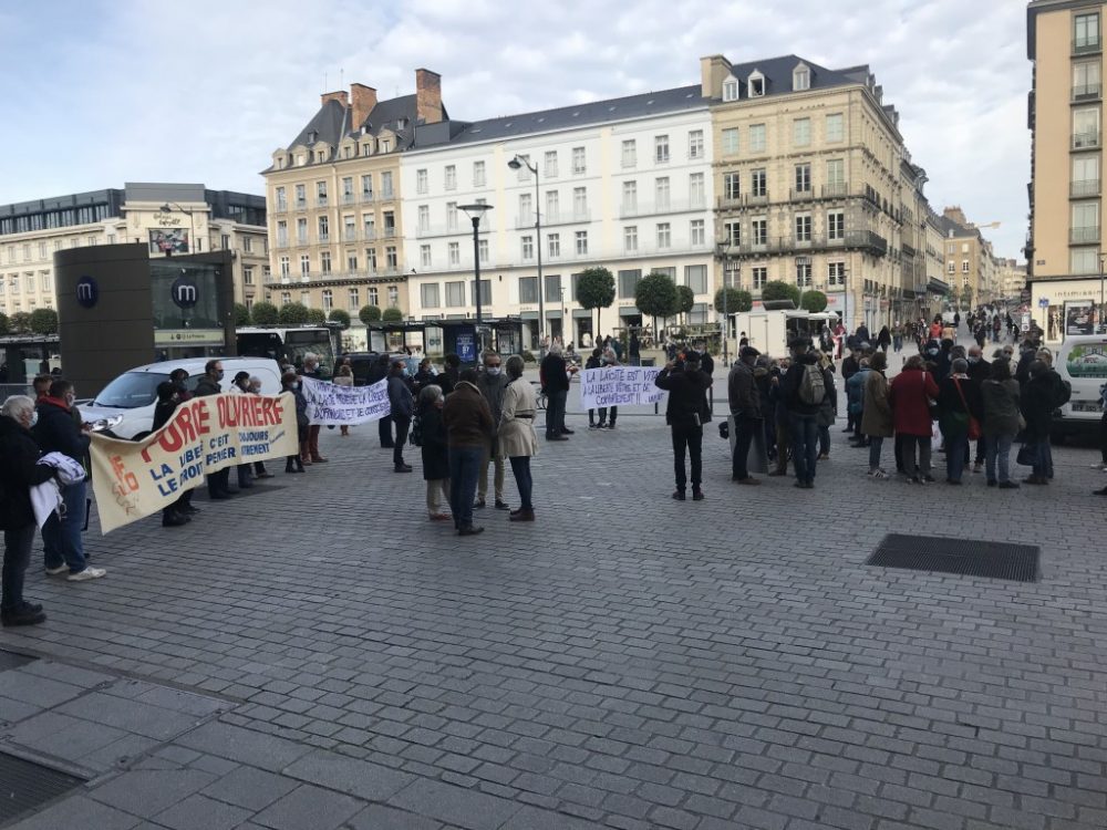 La pression ne retombe pas contre l’obscurantisme et l’islamofascisme. Ce lundi midi, devant la République, à Rennes, des hommes et femmes se sont rassemblés pour honorer la mémoire de Samuel Paty, professeur d’histoire et de géographie assassiné par un fou, à la sortie de son établissement, à Conflans-Sainte-Honorine (Yvelines), vendredi soir. Ils étaient environ soixante-dix, en présence de Fabrice Lerestif, secrétaire de Force Ouvrière et de bien d’autres syndicats. Tous ont promis de se retrouver, mercredi prochain, pour une nouvelle manifestation. En France, de nombreux cérémonies ont lieu dans les grandes villes françaises. Un premier rassemblement avait eu lieu samedi, à Rennes, toujours devant la République. Emmanuel Macron, président de la République, a aujourd’hui reçu la famille du professeur.