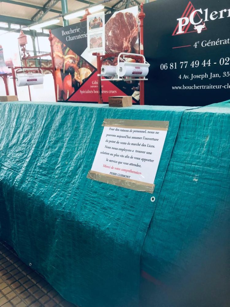 À Rennes, ville de gauche par excellence, les bouchers ont-ils eu peur ? Ont-ils craint une fronde anti-viande ? Habituellement, en cette période de rentrée, ils sont nombreux sous les halles pour le marché des Lices. Mais comme par enchantement, beaucoup avaient disparu (comme le témoigne notre photo !). Renseignement pris, la charcutière (tant appréciée) était conviée à un mariage et un des bouchers n’était pas venu, faute de personnel. Ce qui en l’occurrence est un problème de notre société…peut-être bien plus important que de s’interroger sur les symboles de la virilité !