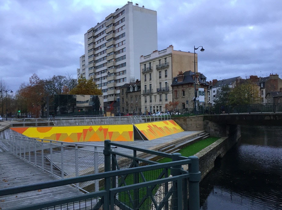 A Paris, on voit du Louvre le quartier de la Défense. A Rennes, de la fontaine Maginot réaménagée en plage urbaine, on verra bientôt l’immeuble du Cap Mail. Situé sur les bords de la Vilaine entre les avenues Sergent Maginot et Aristide Briand, ce point de vue inédit a été aménagé grâce à la deuxième session du budget participatif de la municipalité. « J’habite juste en face et je trouvais dommage de laisser ce lieu qui offre une si belle perspective sur la Vilaine à l’abandon », explique la porteuse de projet. « Je voulais en faire un nouveau théâtre sur la Vilaine. »
