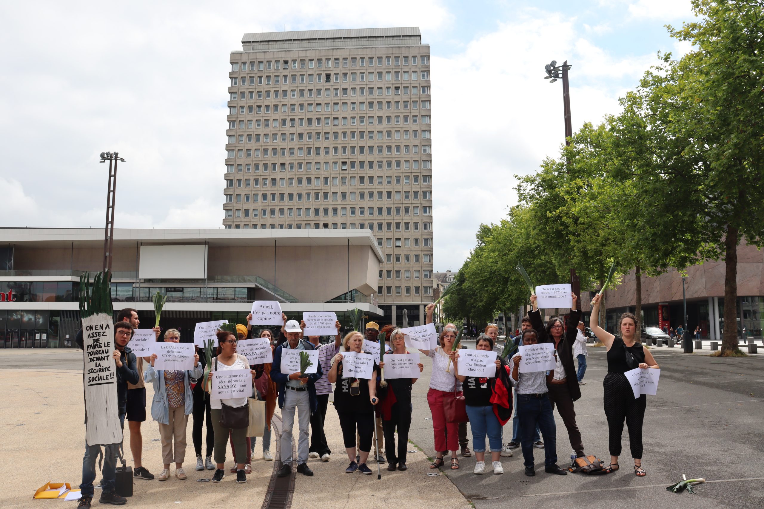 Du quartier de Villejean, ce jeudi 23 juin 2022, les manifestants sont une bonne trentaine à être venue devant la tour de la Sécurité sociale, esplanade du Général de Gaulle. Âgés ou non, valides ou non, ils crient des slogans en faveur de la réouverture de l’antenne de la CPAM (Caisse primaire d’assurance maladie) dans le quartier de Villejean. « Depuis cinq ans, nous demandons un local et un rendez-vous avec la direction », explique Rachida.