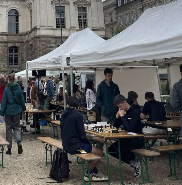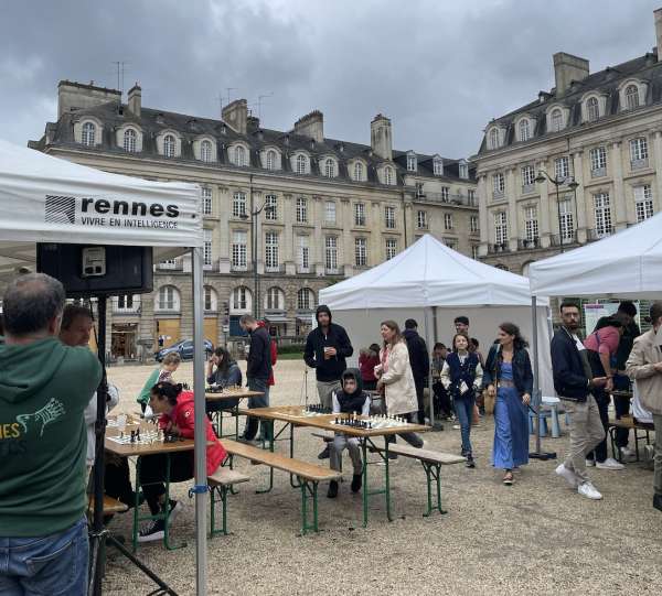 Ce 13 septembre, sous des nuages menaçants, un petit monde d’aficionados s’est rassemblé sur la place du parlement pour assister à l’édition 2025 de « Tout Rennes mat ». Au programme, de nombreuses animations étaient tournées vers les échecs afin de faire découvrir aux petits (et les grands) les dessous du jeu.