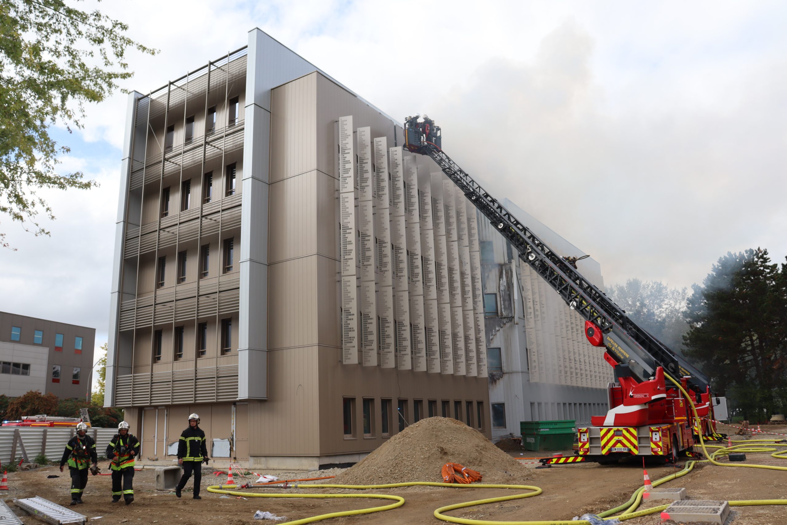 Ce lundi 3 octobre 2022, de nombreux pompiers se dirigent vers le 6 allée du Bâtiment, non loin de l’avenue du Gros-Malhon, sur la route de Saint-Grégoire. De la fumée sort d’un bardage d’un immeuble en construction pour le groupe SMA BTP.