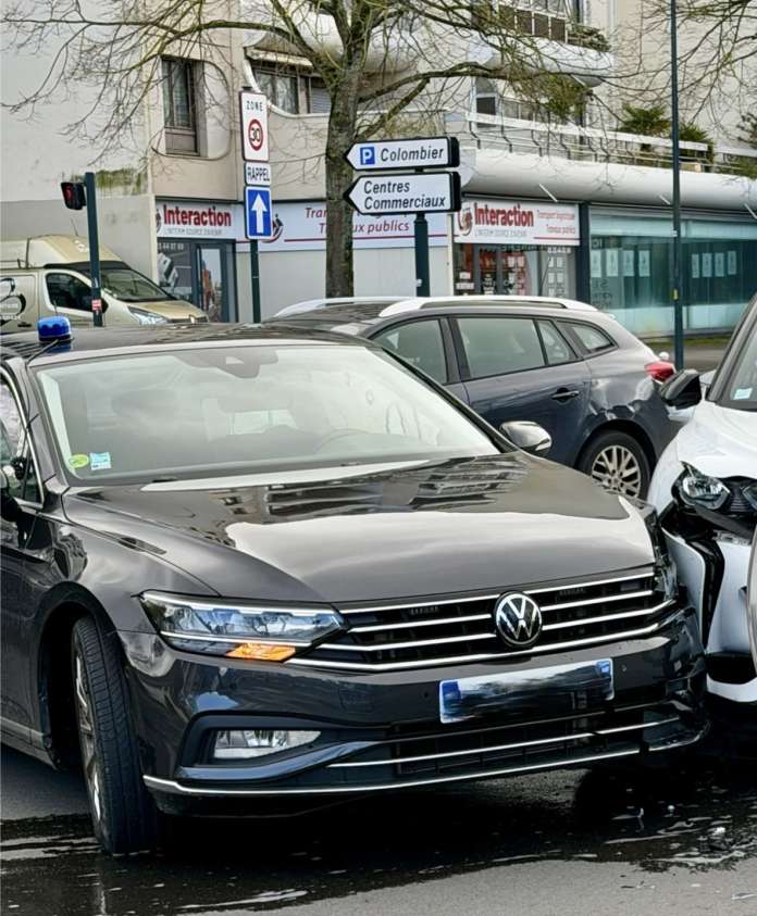 « Je traversais le carrefour », raconte un témoin, présent au moment des faits. « J’ai entendu les sirènes. Je me suis retourné et là, boum : j’ai vu le choc. » Dans le centre-ville de Rennes, une voiture de police rentrait d’intervention ce mercredi 11 mars, vers 14 h 20. À l’angle du boulevard de la Tour-d’Auvergne et de la rue du Puits-Mauger, le véhicule, qui arrivait du centre Colombia, circulait avec les avertisseurs sonores en fonctionnement lorsqu’il a été percuté par un SUV venant du pont de Nantes. Après la collision, la conductrice de la grosse berline, âgée d’une cinquantaine d’années, a été prise en charge par les policiers puis par les pompiers arrivés sur place. Par précaution, elle a été transportée au CHU de Rennes. Dans la voiture de police se trouvait une femme d’une quarantaine d’années, menottée après avoir été interpellée pour des faits de violences. Après l’accident, elle a été conduite au commissariat, où elle doit être examinée par un médecin. Mais son état n’inspire pas d’inquiétudes. Sous la violence du choc, les airbags du véhicule de police se sont déclenchés immédiatement. Trois policiers ont été légèrement sonnés et doivent également consulter un médecin. Alertés notamment par le système de balises du SUV, trois fourgons de pompiers se sont rendus sur place pour sécuriser les lieux et prendre en charge les personnes impliquées. Une enquête a été ouverte afin de déterminer les circonstances exactes de l’accident.