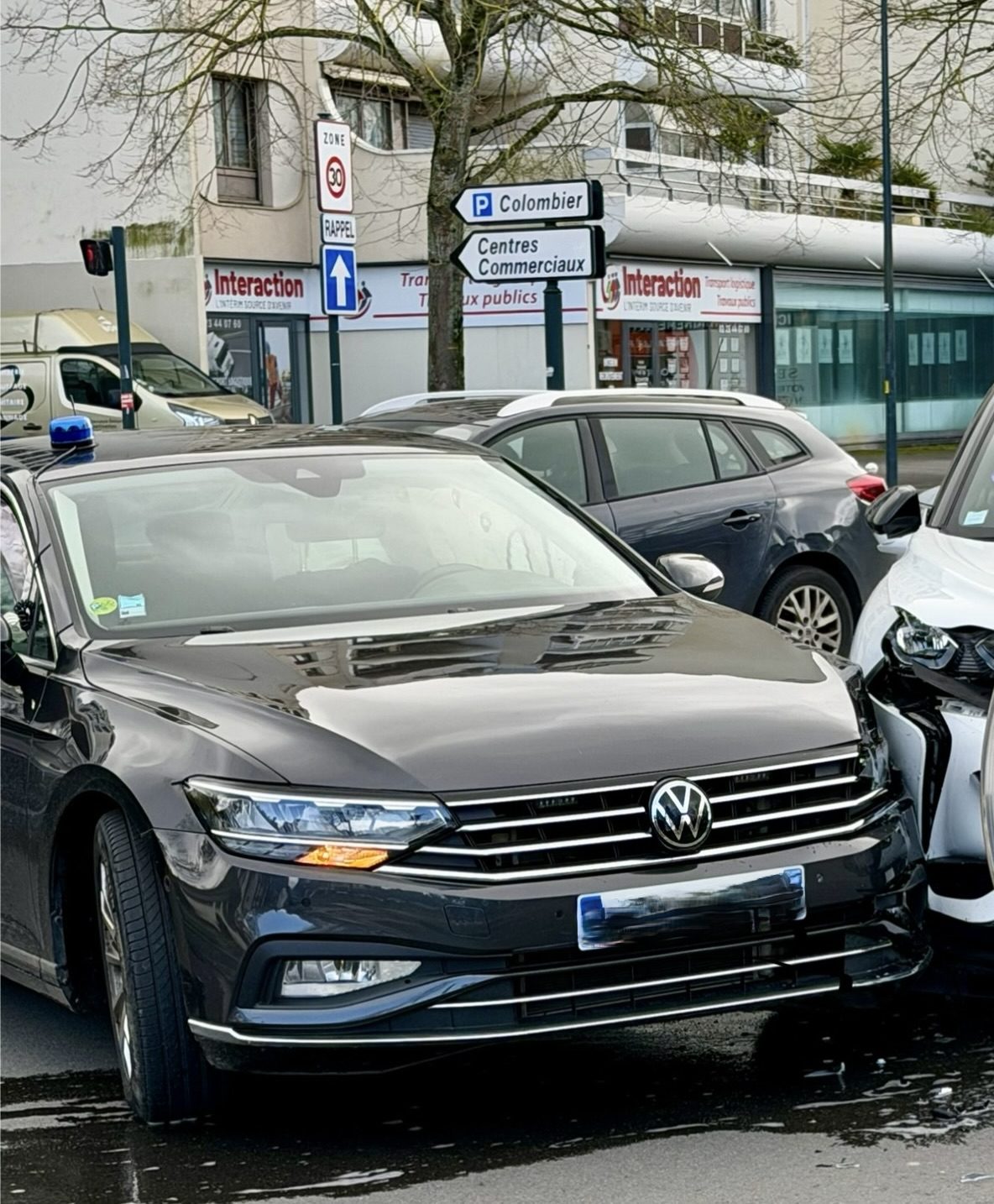 gyrophare allumé, une voiture de police percutée devant le commissariat