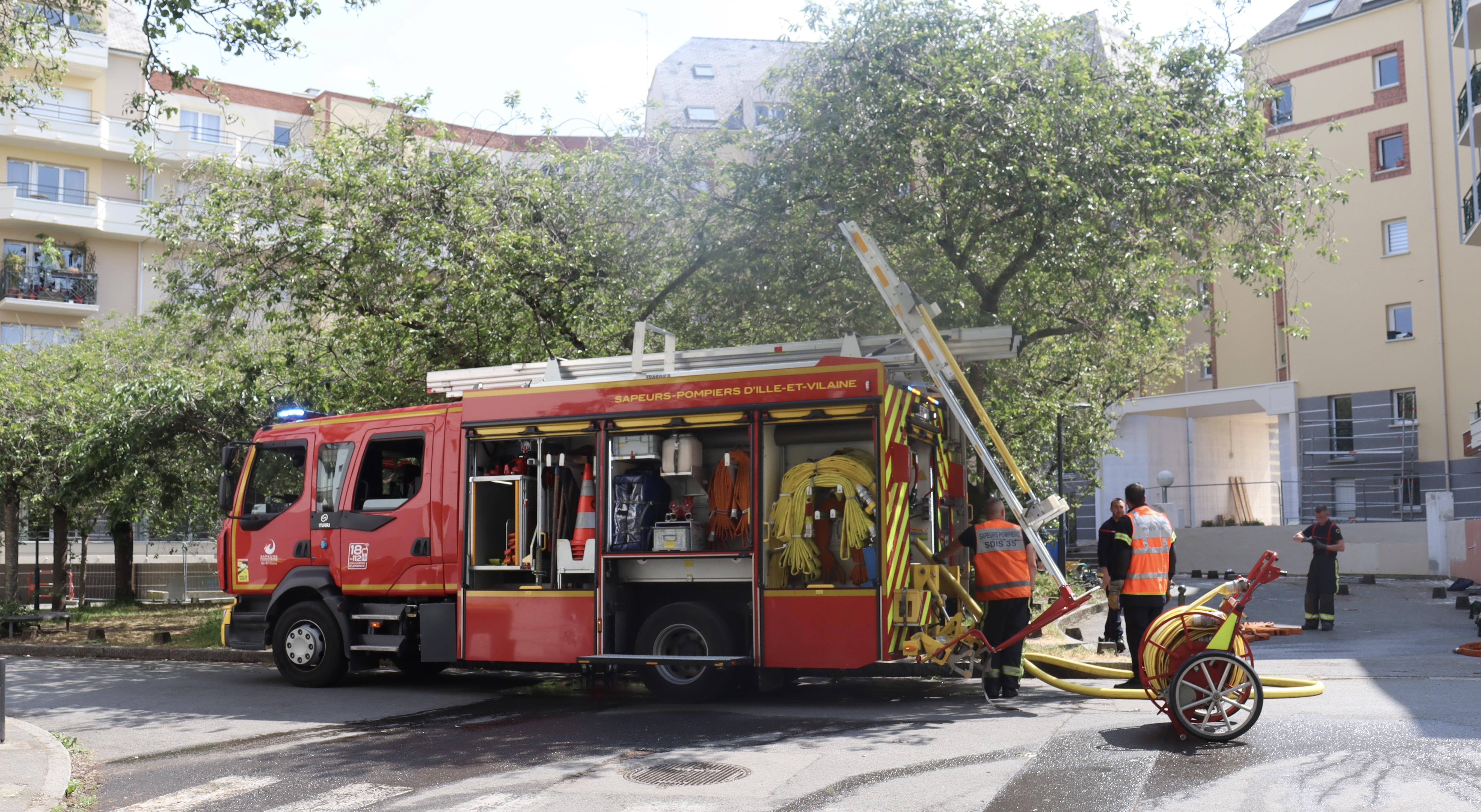 «Il faut tout ouvrir et vous pouvez très bien rester chez vous », explique Christophe Vandenhecke à une locataire, installée juste au-dessus de l’appartement sinistré. Ce mardi 28 avril, un incendie s’est déclaré dans un logement de 40 m2 situé rue Mgr Duchesne, dans le quartier Saint-Hélier à Rennes. «L’alerte a été donnée à 11h23 pour un feu accompagné de fumées dans les parties communes.»