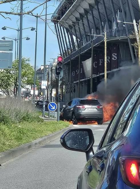 Ce jeudi 2 avril, peu avant 17 heures, un incendie s’est déclaré dans le moteur d’une voiture à proximité immédiate du Roazhon Park, à Rennes. Il s’est produit sous les yeux de nombreux passants, surpris par la soudaineté des flammes. Très rapidement, les pompiers sont intervenus sur place afin de maîtriser le sinistre. En revanche, cet événement a fortement perturbé la circulation dans le secteur. D’importants bouchons se sont formés aux abords du stade, compliquant les déplacements en fin d’après-midi. Les circonstances précises de l’incendie restent à déterminer. Photos DR