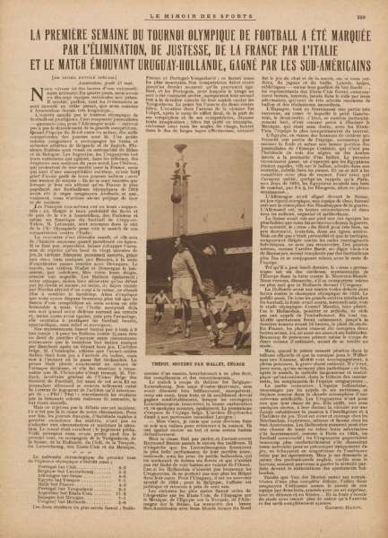 Pourtant, la victoire paraissait assurée grâce aux deux buts marqués par Juste Brouzes, à la suite de combinaisons courtes avec Devaquez. « Mais le succès, nos arrières Wallet et Domergue le laissèrent, par indolence, filer entre leurs doigts, comme une anguille. Les Italiens égalisèrent : notre attaque, moins bien alimentée qu’au début par les demis et menée, en outre, de façon timide par Nicolas atteint d’un coup à la cuisse, ne réussit plus à combler le handicap. »