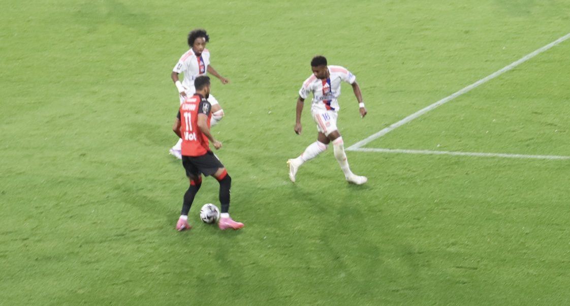Tout avait bien commencé pour l’OL. Dès la 14e minute, Corentin Tolisso ouvrait le score de la tête sur un centre de Maitland-Niles (0-1). Ses coéquipiers ont ensuite eu plusieurs occasions de se mettre à l’abri. Mais Merah, seul face à Brice Samba, s’est heurté au portier breton, auteur d’une double parade exceptionnelle (41′). « On ne démarre pas très bien, on n’arrive pas à aller les chercher. Pendant vingt minutes, ils ont démontré une qualité technique assez remarquable », a expliqué Habib Beye.