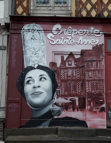 Récemment, Aéro a réalisé une magnifique bigoudène sur devinez quoi…une crêperie. Rien de plus normal pour une Bretonne et pour notre artiste local, ancien cuisinier. En tout cas, joli coup de pub pour l’établissement et pour notre artiste, qui d’après nos informations, n’en a pas vraiment besoin. Deux de ses oeuvres seront bientôt vendues aux enchères chez Drouot. Excusez du peu…Pour en savoir plus sur l’artiste : https://www.facebook.com/creaero.artistepeintre