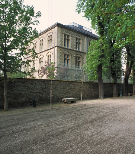 A partir de 1877 , le pavillon fut construit avec des poteaux en fonte et poutres en fer pour abriter les Archives, situées à cette époque au palais de justice (Parlement de Bretagne) et dont le plancher menaçait de céder. Il est l’œuvre de l’architecte du département, Hippolyte Béziers-Lafosse. En creusant les fondations, on y découvrit deux amphores renfermant un trésor considérable dont 10 bagues en argent et 16.368 monnaies datant du Ier au IIIe siècle.