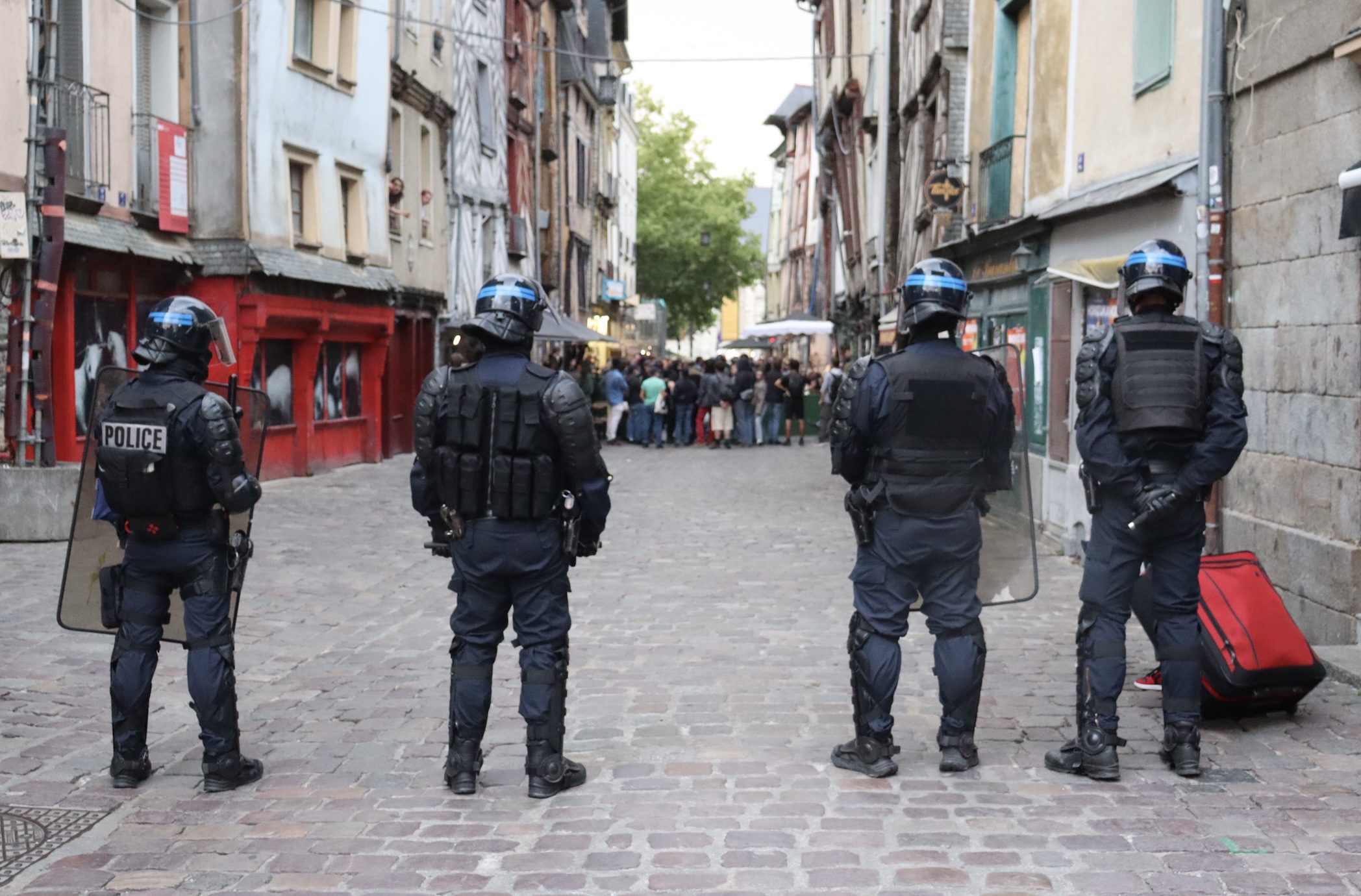 Dans les rues du centre-ville, le cortège improvisé a emprunté la rue Le Bastard. Arrivé à la Station Sainte-Anne, il a tenté de passer par la rue Penhoët et la ue Saint-Michel. Mais déployées rapidement, les forces de l’ordre en ont néanmoins barré l’accès. Jusqu’à 21 h 15, les manifestants sont restés sur la place où ils ont notamment entamé une chenille.