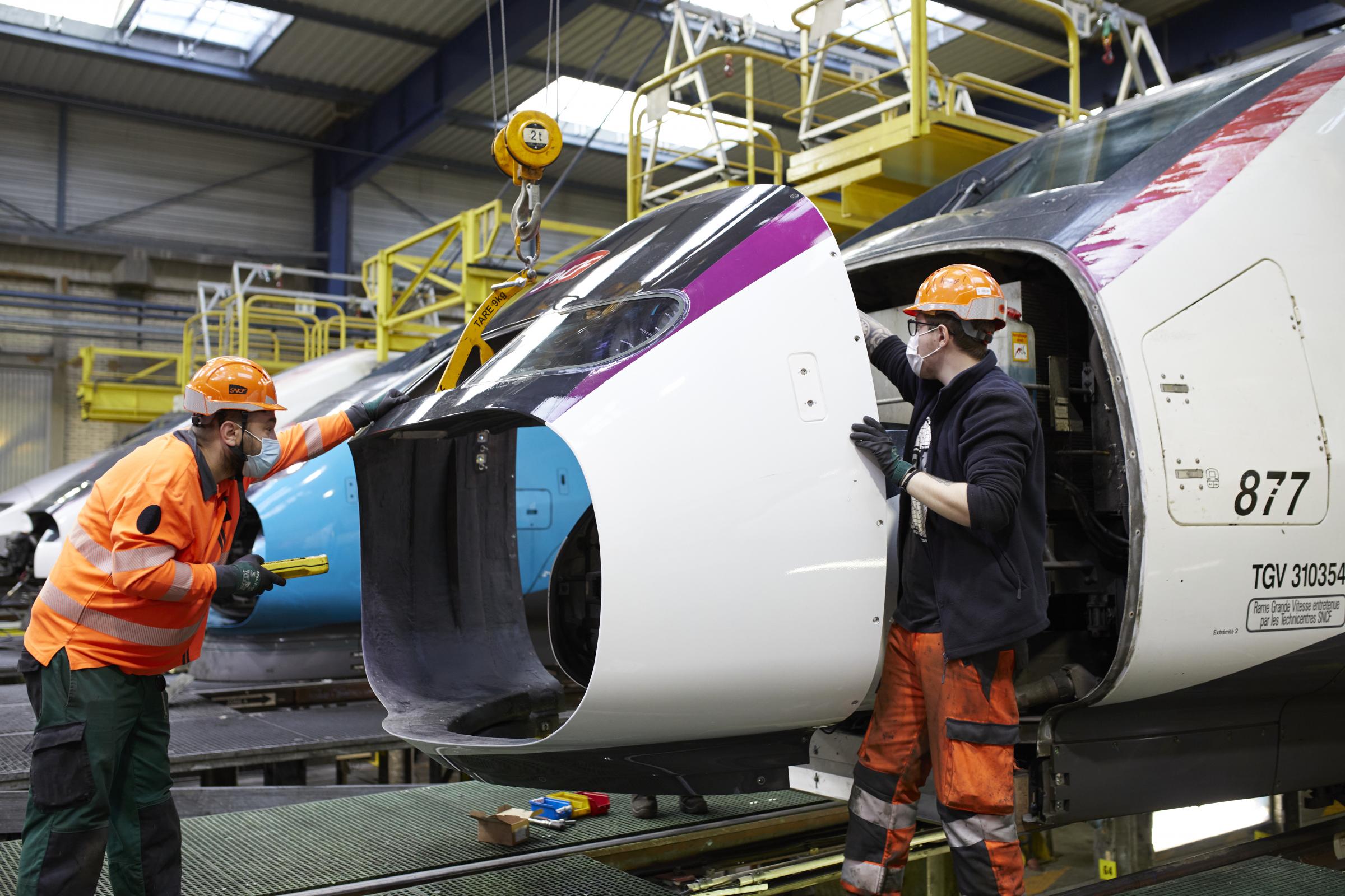 Un nouveau nez de TGV aérodynamique a été mis en place sur un engin ferroviaire pour la première fois le jeudi 15 avril matin, au technicentre Atlantique. Innovant, il a moins de prise au vent, enclenche une consommation réduite d’énergie et résiste mieux aux chocs légers.