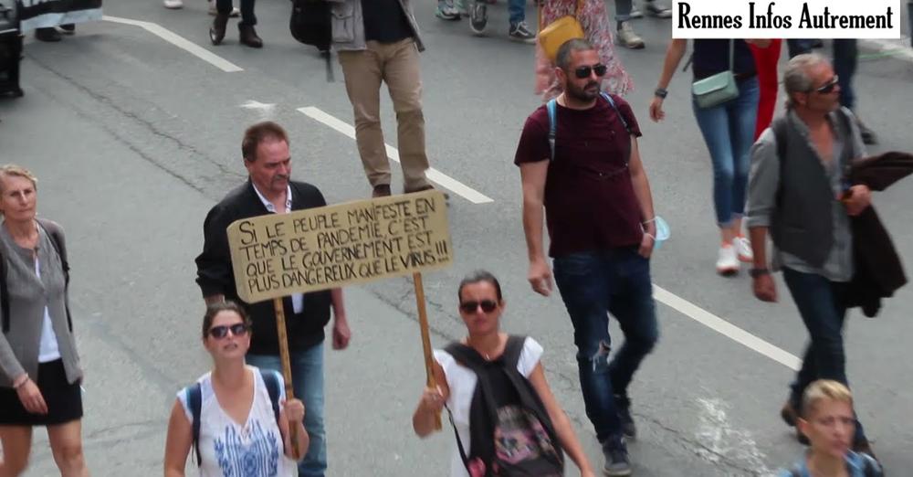 « Non au pass sanitaire, du fric pour l’hôpital public, Hippocrate poignardé », voici les slogans que l’on pouvait lire sur les panneaux, lors de la manifestation anti-pass sanitaire, organisée cette après-midi dans les rues de Rennes. Au plus fort de la manifestation, des centaines de personnes ont défilé aux abords des Champs Libres et dans le centre-ville. Dans toute la France, d’autres cortèges étaient prévus ici ou là. Quatre rassemblements étaient organisés dans la capitale, et plus de 200 dans toute la France. On comptait 5000 personnes à Mulhouse, 2000 à Aix, 3000 à Marseille, plusieurs milliers à Montpellier, 20000 à Paris un défilé en musique à Pau et une chaine humaine à Morlaix. Quelques tensions sont à noter à Toulouse.
