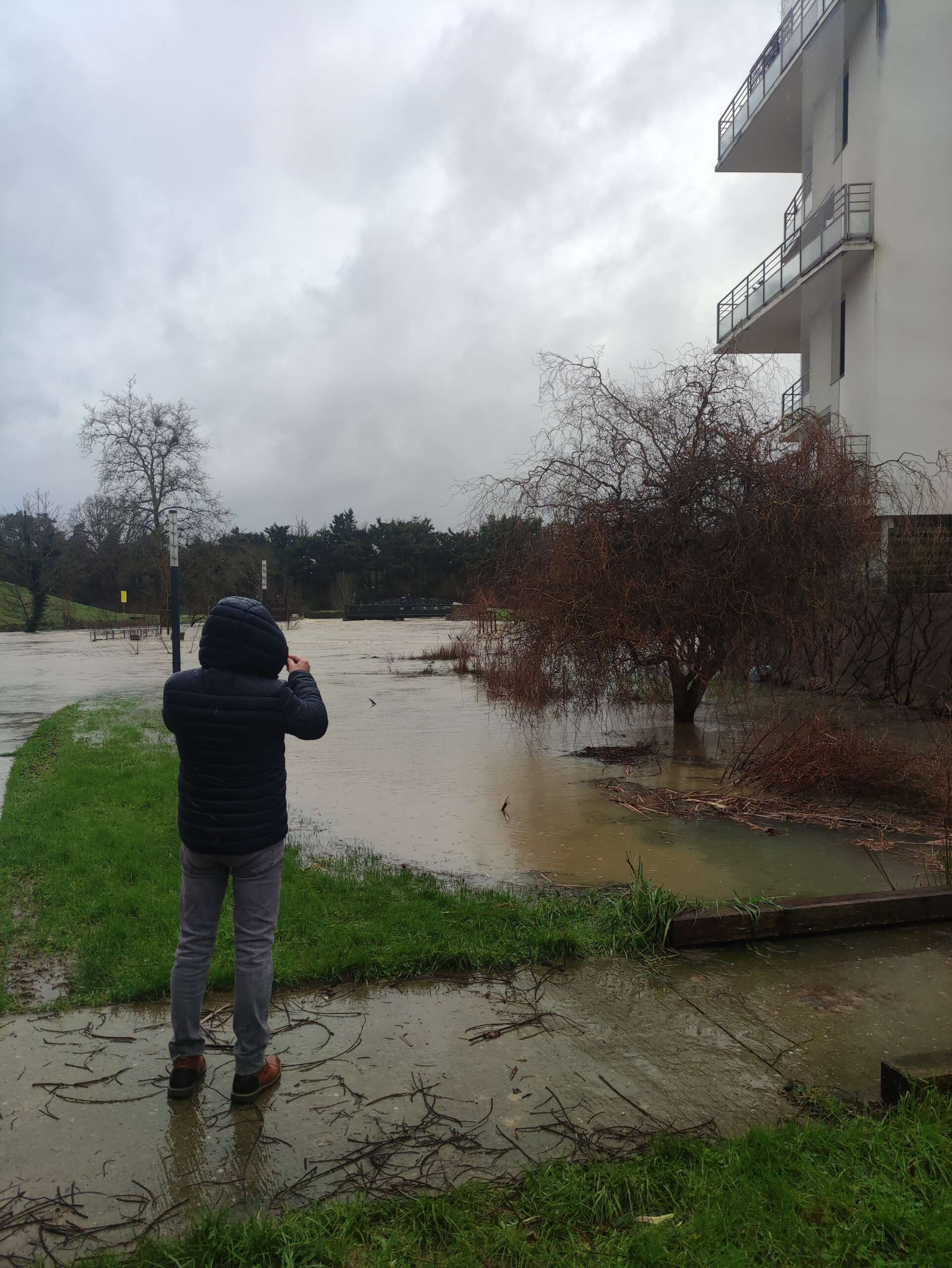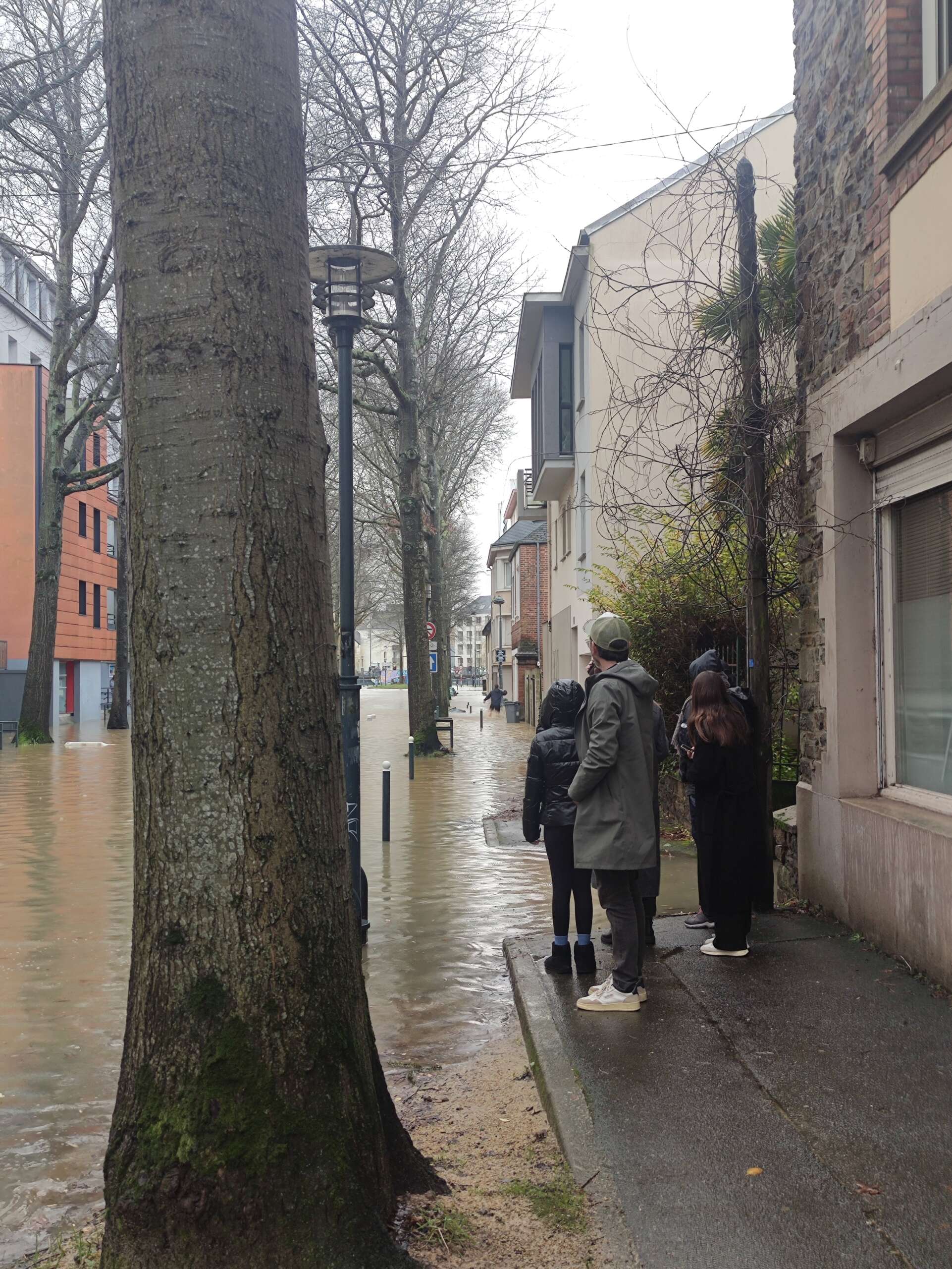 Ce dimanche 26 janvier, de nombreux Rennais se pressent le long de la Vilaine et du canal d’Ille-et-Rance. Munis de leurs téléphones et appareils photo, ils veulent constater par eux-mêmes l’ampleur des crues qui frappent la ville. Devant eux, les péniches sont encerclées par les flots, le long des quais de la Prévalaye. Derrière eux, le café le Bacchus et l’immeuble Cap-Mail sont les pieds dans l’eau. En face, la propriétaire d’une maison observe le travail des gens de la municipalité, installant des protections métalliques « Nous avons passé une mauvaise nuit », indique-t-elle. Cette protection aurait pu être mise en place plus tôt. »