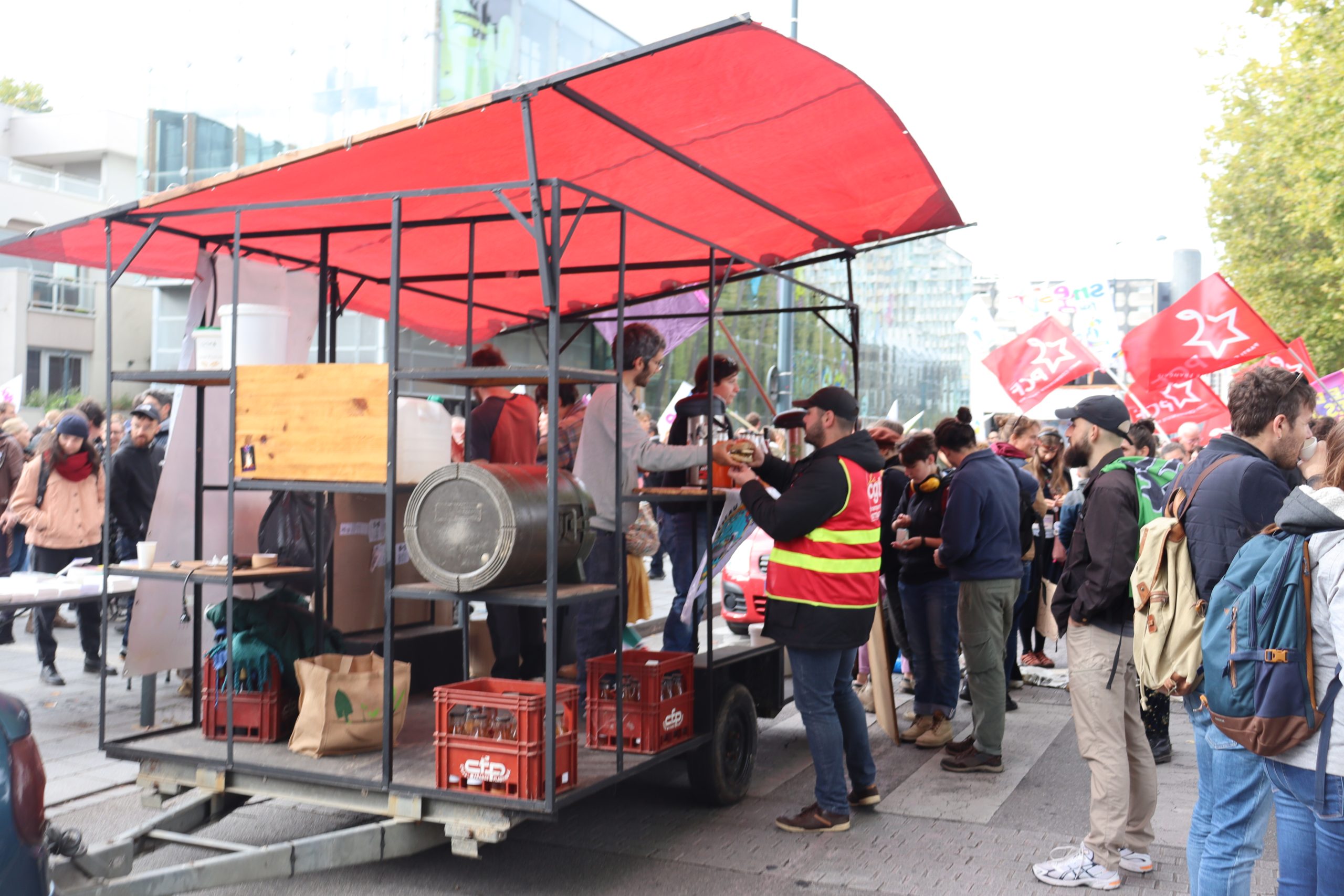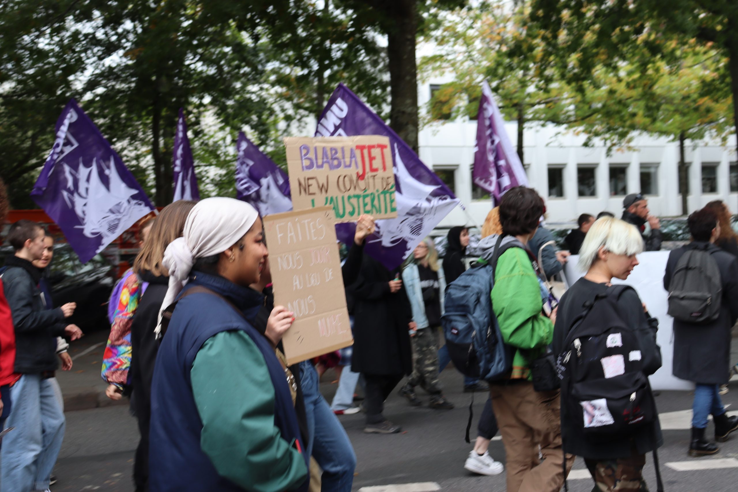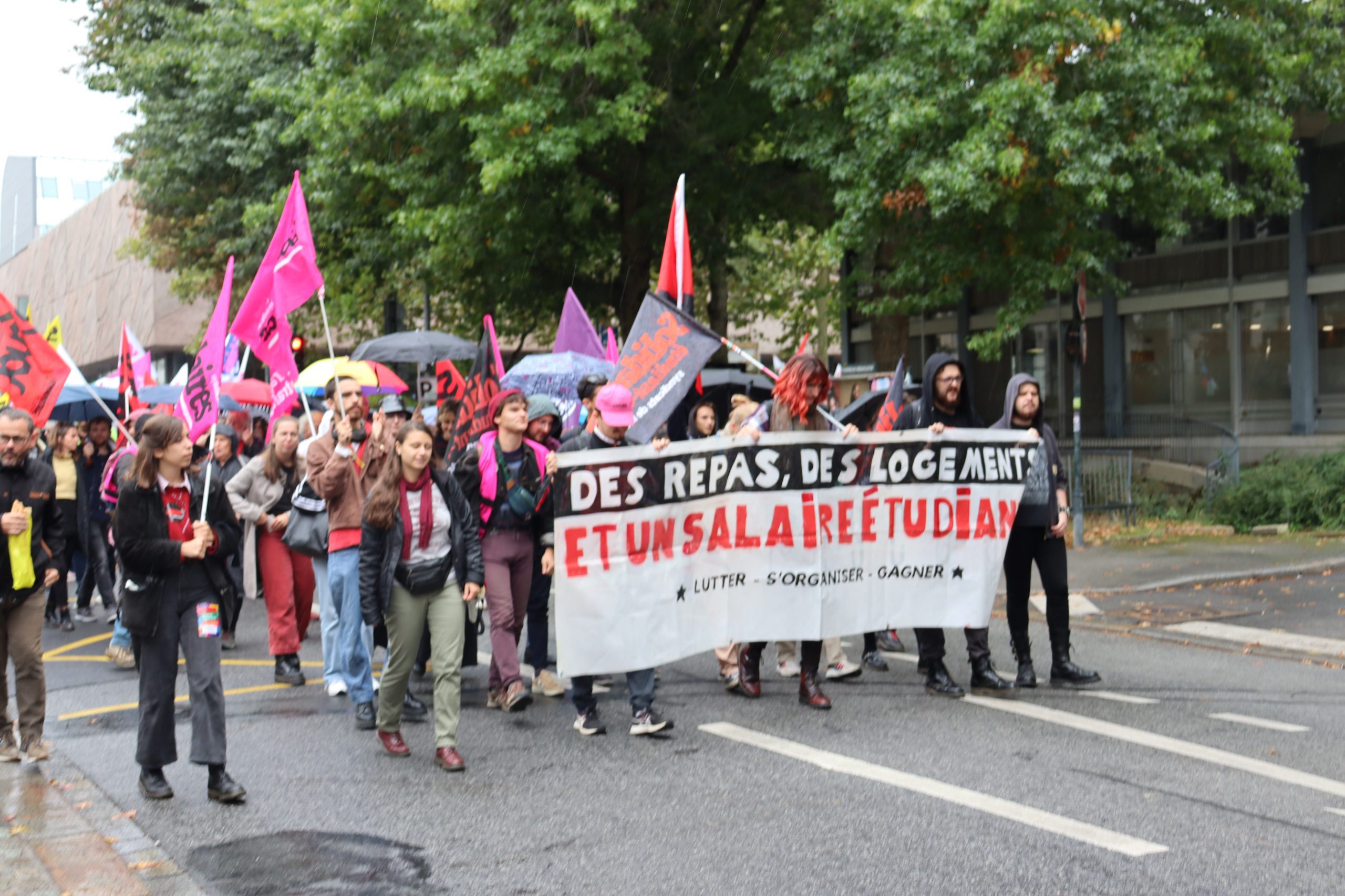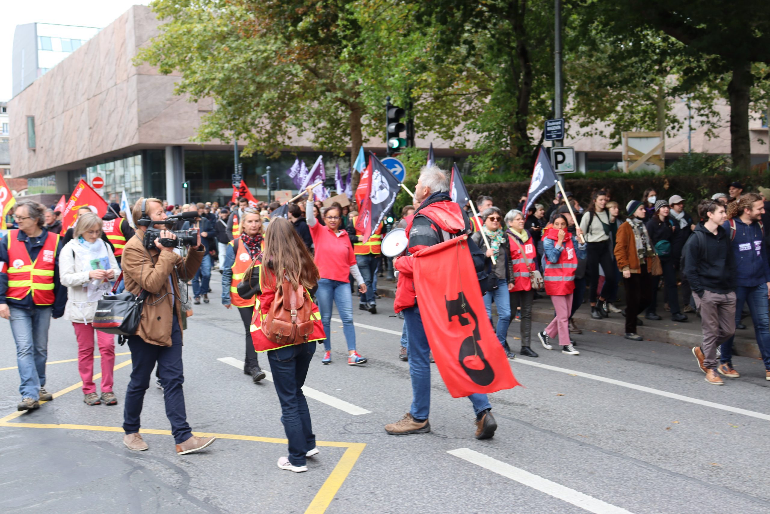 « De tout temps, en tous lieux, seule la lutte paie ! », souligne un syndicaliste, ce jeudi 29 septembre, jour de manifestation. « L’heure est grave pour arrêter la « macronneuse ». Pas touche à nos retraites ». Comme lui, une manifestante peste contre la politique du gouvernement au micro d’une organisation syndicale. « Cette crise est encore une occasion pour enrichir les plus puissants. Quel mépris pour les étudiants boursiers, les travailleurs précaires… Tous et toutes, nous comptons chaque jour nos dépenses pour survivre et payer nos loyers. » Partis de l’esplanade du Général de Gaulle, vers 11 h 30, des milliers de personnes ont défilé dans les rues de la ville sous les bannières (CGT, FO, Sud, Solidaires et bien d’autres encore). Ils ont demandé des hausses de salaire, des pensions, des bourses et ont affiché leur opposition ferme à la retraite. Fait à noter, les étudiants de l’Union Pirate ont réussi à se faufiler en tête du cortège au moment du départ. Ils sont passés par la gauche de la CGT pour accomplir leur coup ! Environ 3000 personnes ont manifesté selon la police.