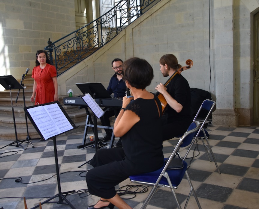 Belle surprise, hier, rue du Chapitre, l’Orchestre symphonique de Bretagne donnait un concert dans l’escalier d’honneur de la direction régionale des affaires culturelles de Bretagne. Il permettait ainsi aux Rennais de revenir dans un endroit historique de la capitale bretonne, l’hôtel de Blossac, où un certain Paul Féval, auteur du Bossu et injustement oublié, est né il y a déjà plus de deux siècles. Tout au long de l’après-midi, quelques musiciens ont joué de la musique classique. Rien de mieux pour découvrir en plein air des oeuvres de Matthieu Stefanelli, de Mozart, Chostakovitch…Les musiciens étaient les suivants : Marc Mouginot, David Le Bras, Fabien Boudot, Timothée Marcel, Thomas Presle, Clémentine Cômes, Olivier Lacour, Frédéric Alcaraz, Fabien Fourrier, Benoît Menut et Justine Curatolo.