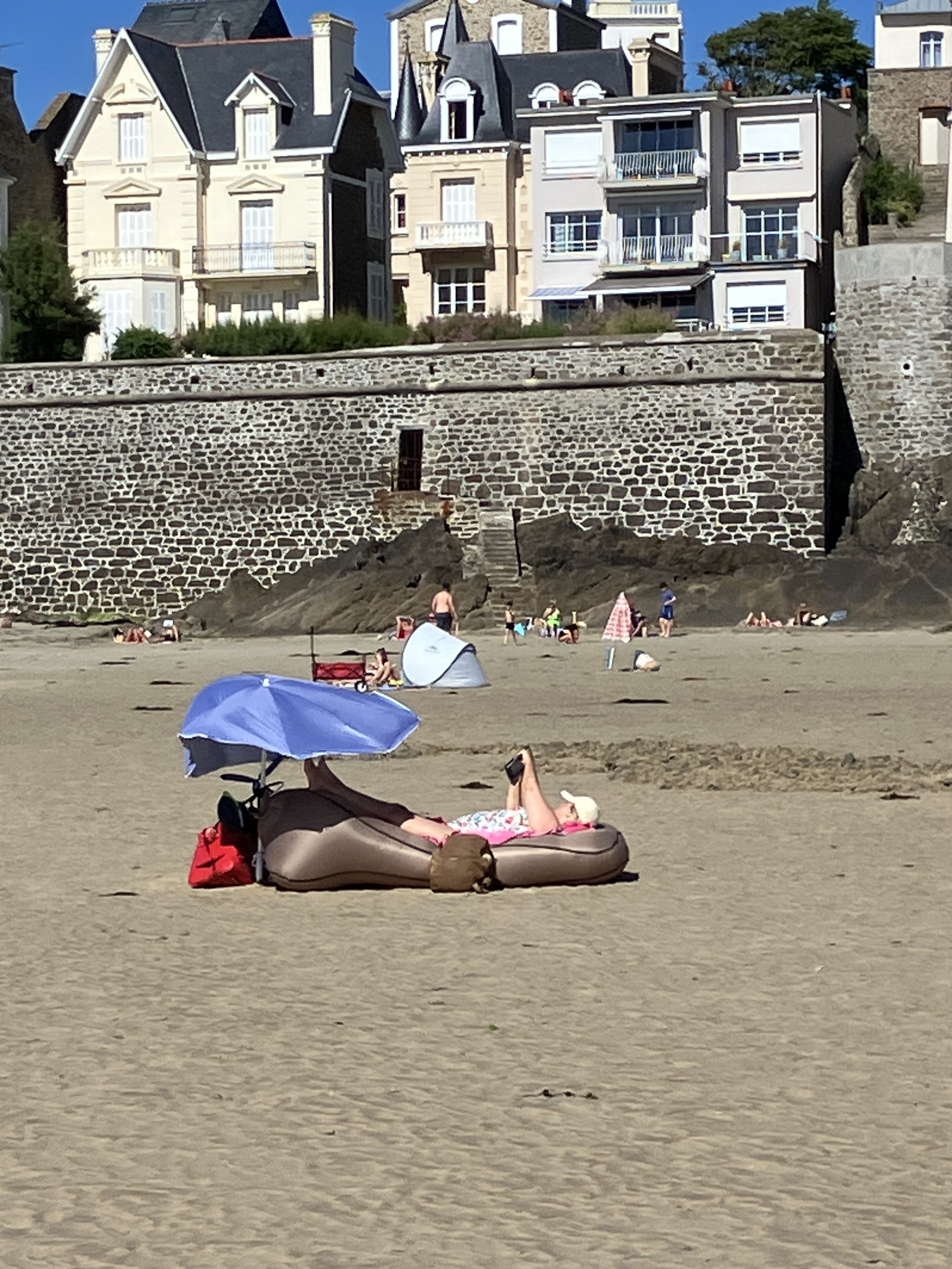 Il se gonfle grâce à vos petits poumons ou la pompe à pied ! Il est devenu le tapis volant des sables, le baldaquin des baigneurs. Le matelas gonflable est un classique de l’été. Il est transparent, à fleurs, pastel ou fluo. Pour éviter de vous mouiller dans l’eau froide de la côte d’Émeraude, il vous emmène sur les flots !