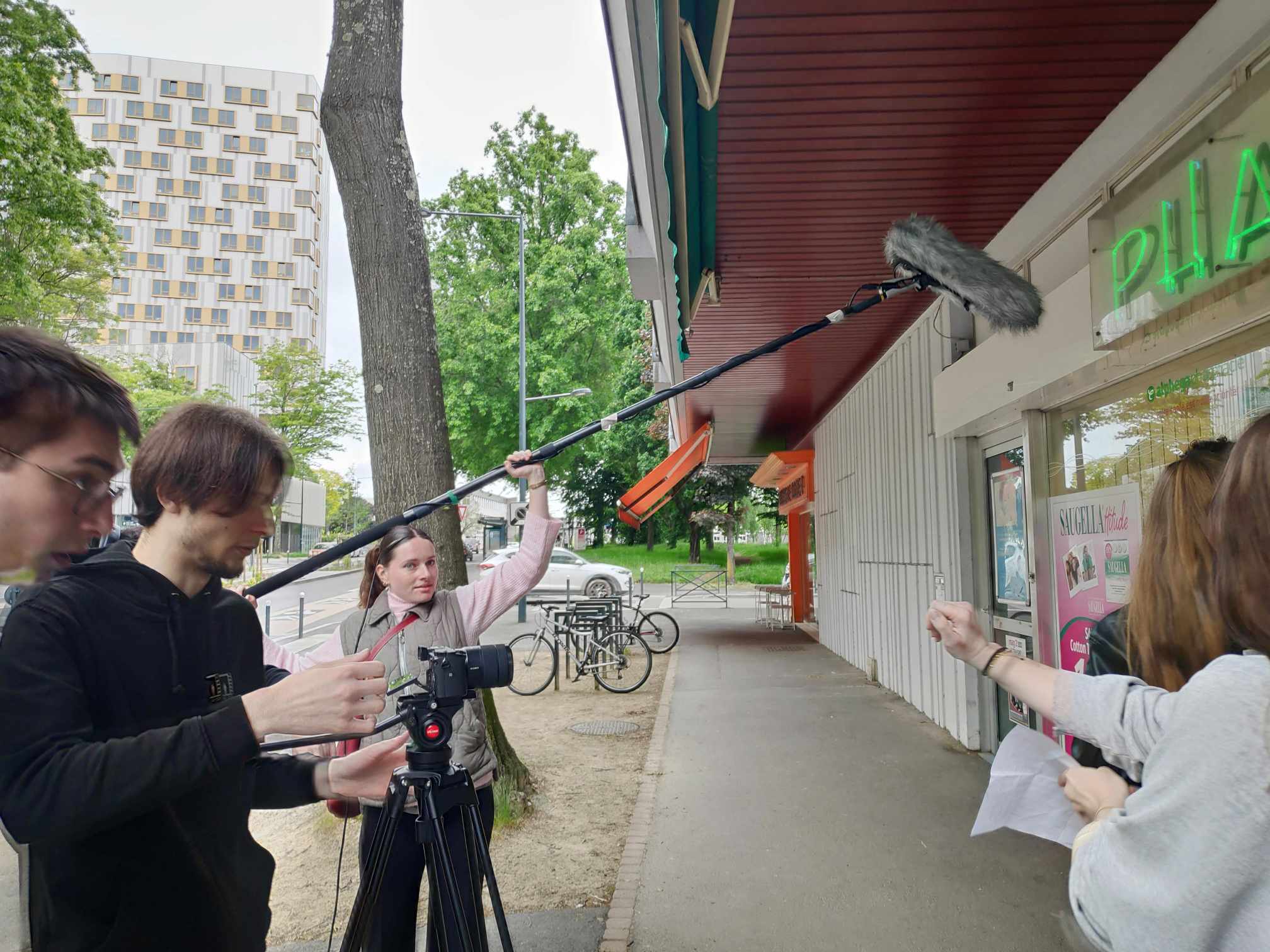 À Rennes, des étudiants de la filière audiovisuelle de l’école Studio’m réalisent leur projet de fin d’année, un court-métrage intitulé Requiem pour une diva. Cette semaine, ils posent leurs caméras dans le cœur de ville ou encore dans le quartier de Villejean. « Nous sommes une dizaine de techniciens et environ le même nombre d’acteurs », explique Laure-Anne, future cinéaste ou monteuse.
