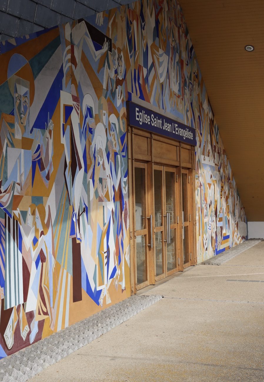 Sur la façade de l’église Saint-Jean l’évangéliste, un artiste local Geoffroy Dauvergne (1922-1977), ancien pensionnaire de la Casa Vélasquez, a peint une magnifique fresque murale en 1963. Atteignant plus de 6 m de haut (à certains endroits) pour une largeur de 21,55 mètres, elle représente une scène biblique où dans le chapitre supérieur, l’on croise Dieu le Père, puis les Saintes Femmes, Saint-Jean-l’Évangéliste avec son aigle.