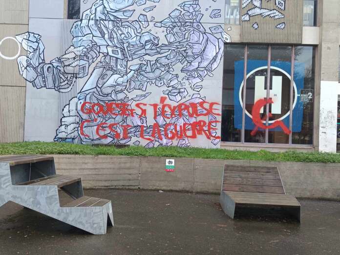 L’atmosphère se tend à Villejean. Sur la façade d’un édifice du campus, un message sans équivoque a été inscrit. « Gouesset, si t’expulses, c’est la guerre ! ». Cette menace directe s’adresse à Vincent Gouëset, président de l’université Rennes 2, qui s’est exprimé hier dans un courrier adressé à son personnel où il déplorait les nouvelles dégradations sur le campus après l’occupation du bâtiment B. « Nous nous inquiétons fortement de ces débordements, qui desservent la cause de la mobilisation», ajoutait-il.