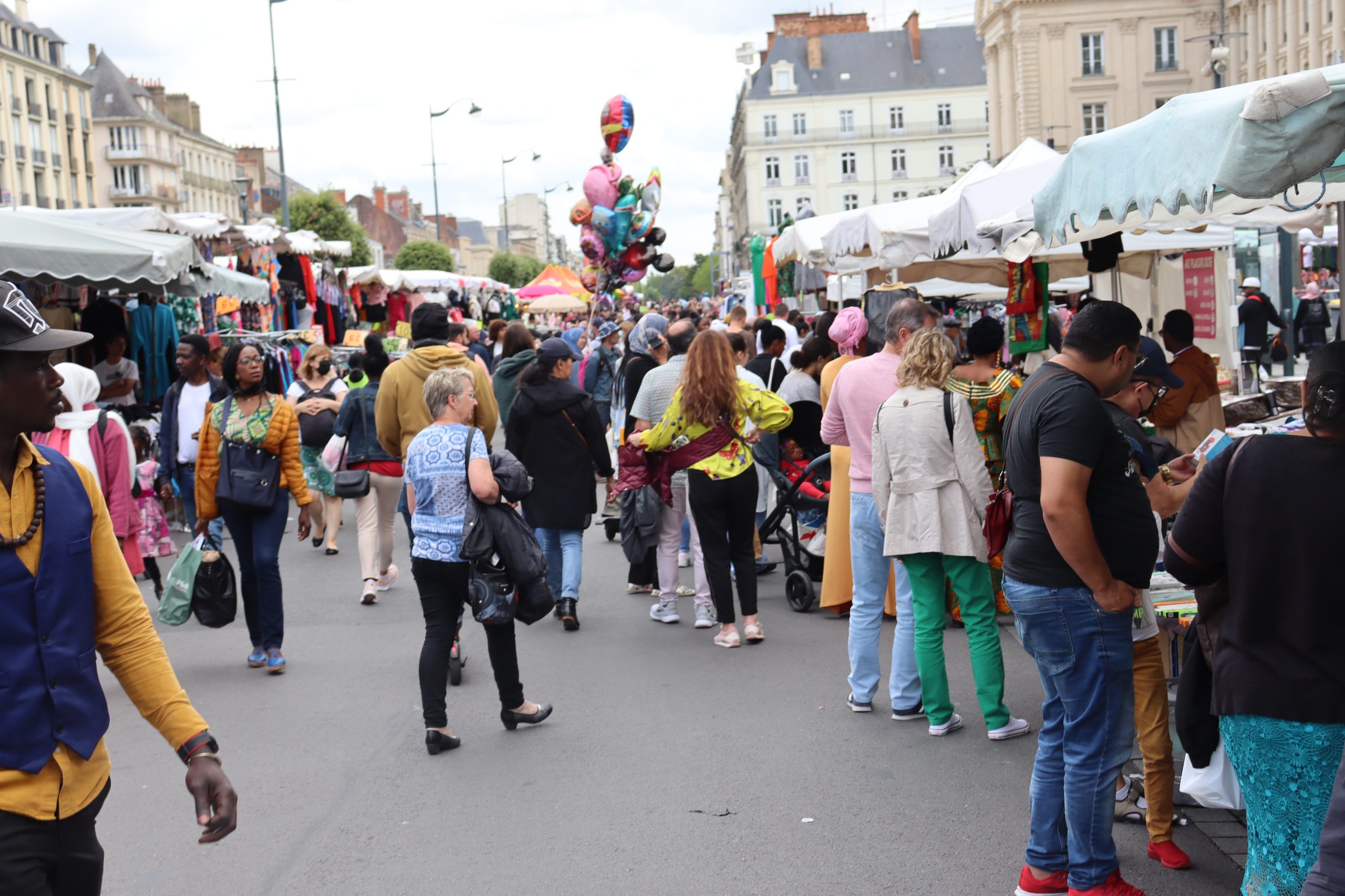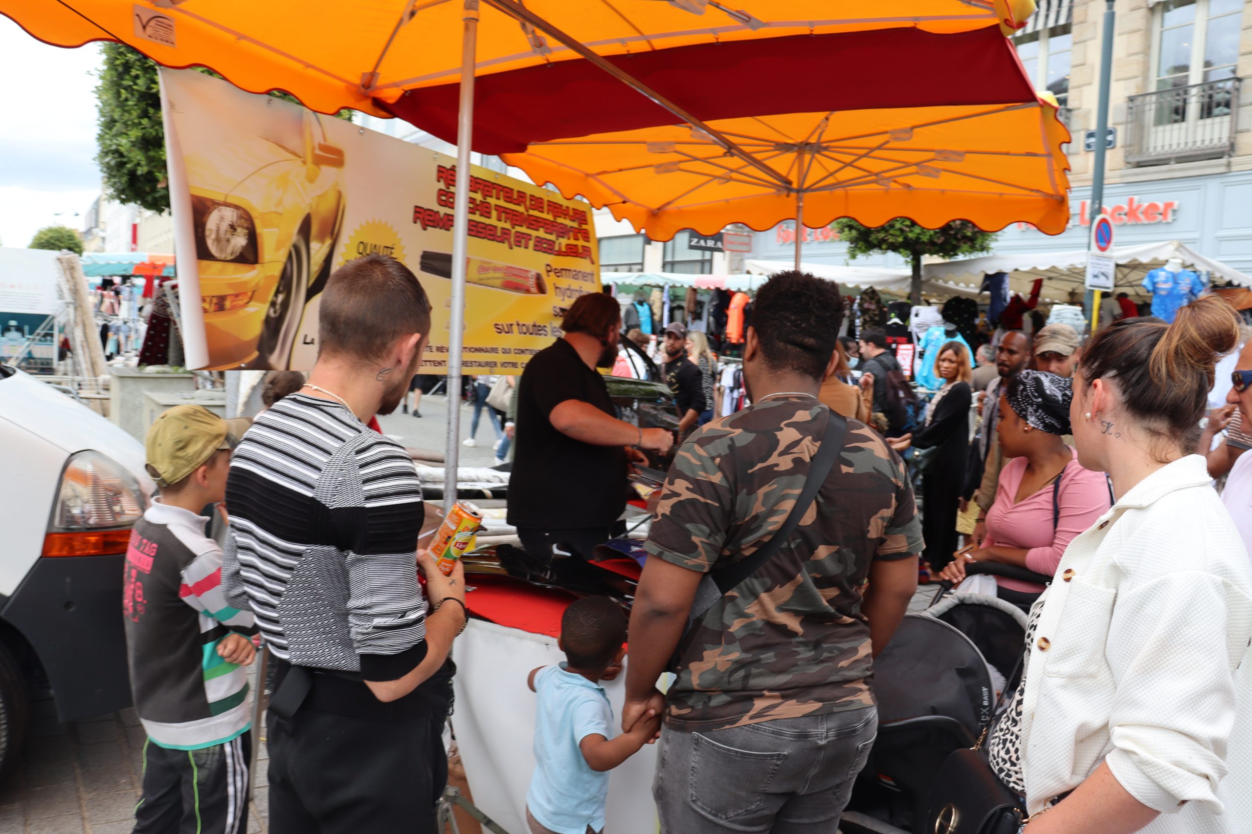Pas de soleil ni de pluies diluviennes pour cette 51e édition de la Grande Braderie qui se déroule dans le centre-ville, ce mercredi 29 juin 2022. Ce temps est idéal pour faire de bonnes affaires et déambuler au milieu des stands. Après une matinée très calme, les Rennais sont attendus cette après-mdi par milliers dans les artères rennaises pour flairer la bonne affaire. Certains ont déjà opté pour le kiosque du Stade rennais où des maillots des Rouge et Noir sont bradés. D’autres n’avaient d’yeux que pour le réparateur de rayures des voitures ou les petits kiosques des Galeries Lafayette. Les autres ont choisi la brocante de la Criée centrale et les ventes des particuliers, place du Parlement. Peu de gens étaient toutefois masqués en ces temps de reprise de la Covid. En revanche, du monde attendait devant la galette-saucisse (notre photo). Le grand déballage rennais se tient jusqu’à ce soir.