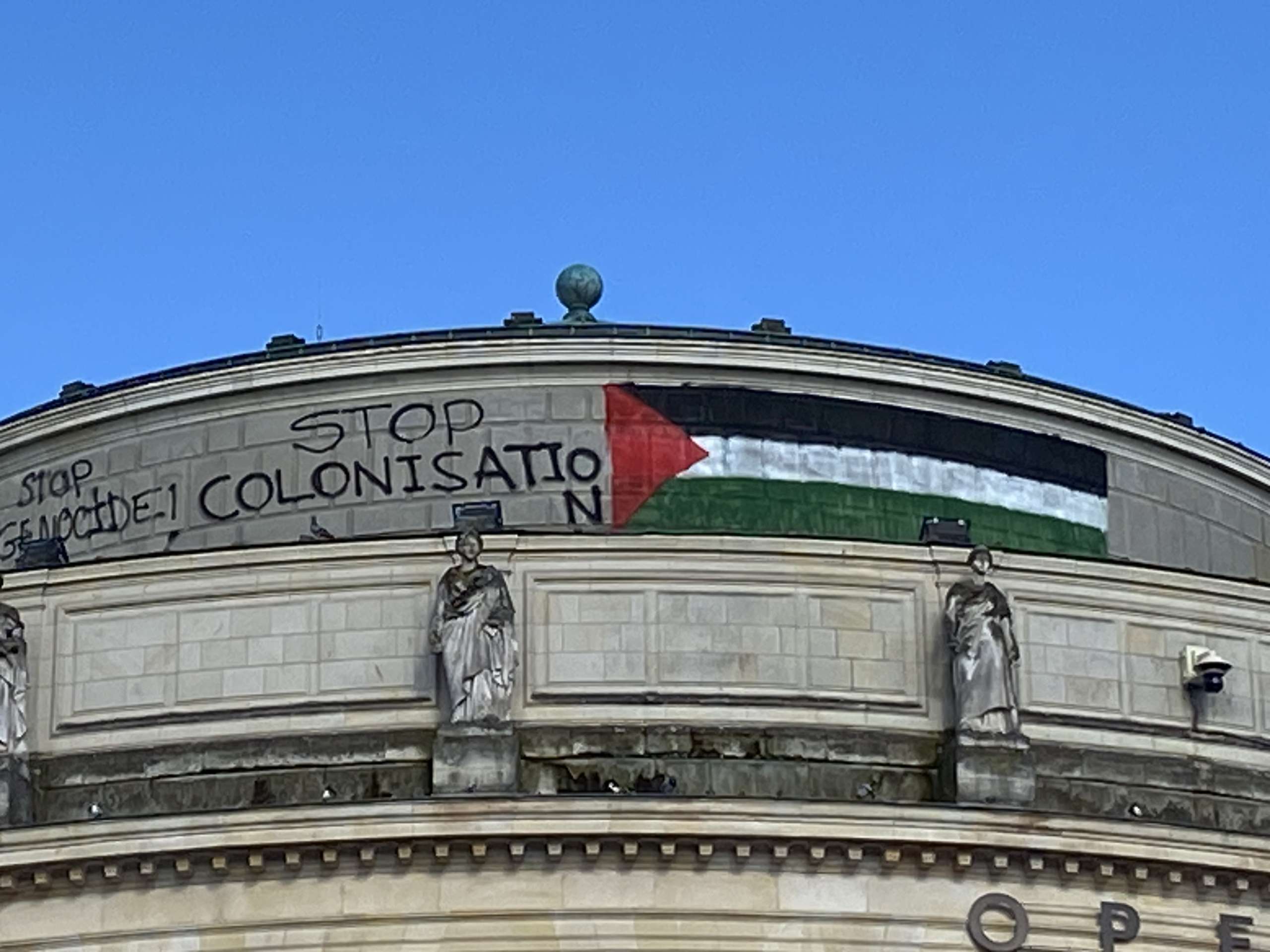 AccueilActualitésUN DRAPEAU PALESTINIEN SUR LE FRONTON DE L’OPÉRA