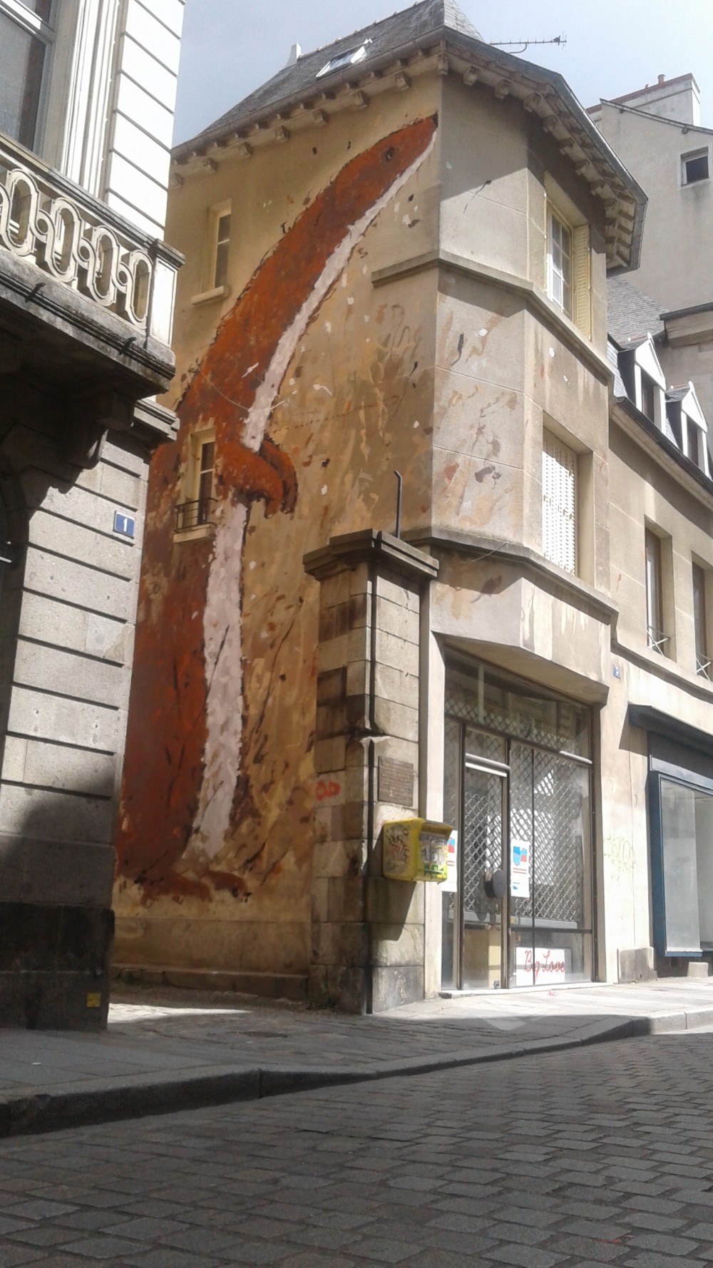 Peinte en grand sur les locaux de l’association Crab Cake Corporation (organisateur de festival rennais), l’hermine (emblème du Stade Rennais et bien sûr de la Bretagne) fait l’unanimité sur les réseaux sociaux. Elle est surtout un nouvel élément bestiaire du graffeur rennais, connu pour ses ses poissons, ses hérons, ses coqs, ses autruches et autres animaux, dessinés avec l’aide d’une perche sur les immeubles rennais. A découvrir dans l’hyper centre ville, à deux pas du Parlement de Bretagne où les magistrats ont parfois la main lourde à l’égard de nos amis graffeurs !